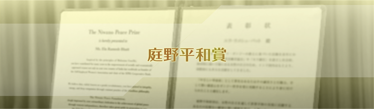 宗教協力により世界平和を達成しようという庭野日敬名誉総裁の精神と行動を尊重し、宗教協力の理念と活動が更に輪を広げ、多くの同志の輩出を心から願うと同時に、現にそのような活動をしている人が多在しているという認識に立って、そのような人材を表彰し、励まし、更にその業績が多くの人々を啓発することを祈って、庭野平和賞を設定しました。