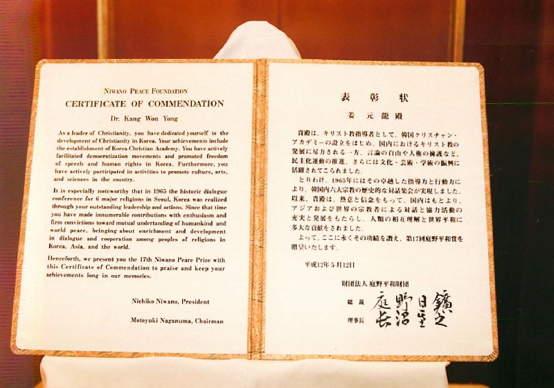 韓国宗教界を代表する指導者であると同時に、国際的な諸宗教対話のリーダーとして活躍し、1986年には「韓国宗教人平和会議」の創設を実現。また、同国内における社会正義の推進をはじめ、文化・芸術の振興にも貢献するなど、幅広い活動を展開している。(2006年没)「21世紀においては、閉ざされた宗教の持つ排他独善性は、文明間の衝突を加速するでしょう。しかし、開かれた宗教が、悲劇的な衝突を乗り越える力となり、宇宙霊性の時代にわれわれを導く可能性が存在するのです。」
