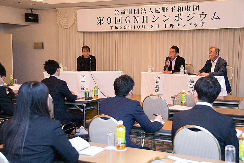 同財団はこれまで、GNHを広く示し、社会の発展のあり方について考えていくため、専門家を招いたシンポジウムや現地学習会を実施してきた。今回のシンポジウムでは、哲学者で、NPO法人「森づくりフォーラム」代表理事の内山節氏による基調発題に続き、NPO法人「島の風」代表の納戸義彦氏、地域おこし団体「わかとち未来会議」代表の細金剛氏が、それぞれ報告を行った。