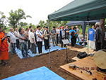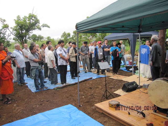 会議前日(10月4日)に現場研修が行われた。約60人が参加。降りしきる雨の中、午前9時ごろから那覇市内の陸上自衛隊那覇駐屯地内の高江洲朝男さんの「ちゅらさガーデン(美しい庭園)」を訪問。庭の一隅に平和を祈念する黒木(沖縄の伝統的楽器の三線の材料)を参加者と共に植えた。この土地は裁判の結果高江洲さんに国から返還されたもの。 このあと南部の摩文仁の丘を訪問。沖縄平和記念資料館、ひめゆり資料館などを参観。王城糸数にある沖縄戦跡「アブチラガマ」(全長270m)の自然洞窟の壕を見学して、沖縄戦の激戦の跡をしのんだ。