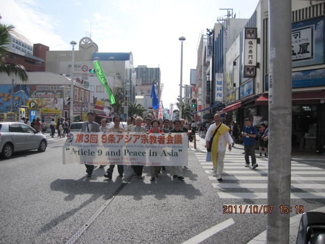 第三回「9条アジア宗教者会議」が10月4日の現場研修のあと、翌5日から7日までの三日間、沖縄県中頭郡西原町の沖縄キリスト教学院を主会場に開かれた。同実行委員会が主催、公益財団法人庭野平和財団(庭野欽司郎理事長)が協賛。2007年の東京,2009年の韓国ソウルにつづいて二年ぶりの開催。