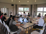 7月6日の午前中は今回アドバイザーとしてツァーに同行した「東アジア環境情報発伝所」代表の廣瀬稔也氏からの講演を頂いた。講演の中で同氏は東アジア地域の環境問題、エネルギー問題について具体的な数字やデータを使用し報告し、また、同氏自身の地域での取り組みについて報告があった。さらに参加者と質疑応答の形でやり取りがあり、身近な問題としての環境問題、エネルギー問題、そして地域の村づくり、まちづくりについて意見交換があった。最後に参加者各自から本ツァーについての所感を聞き取った。