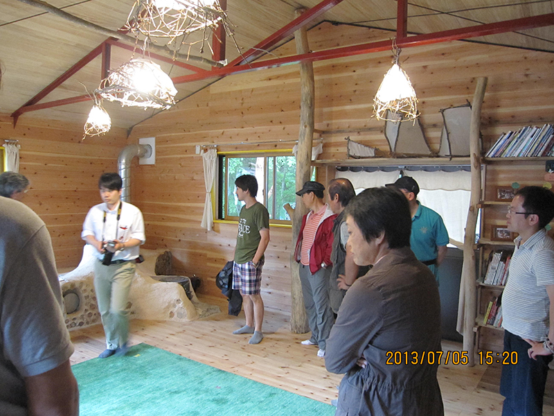 午後はNPO法人「岩手子ども環境研究所」(森と風のがっこう)を訪問した。森と風のがっこうは2001年の設立以来、自然エネルギーを日常生活の場で実感できるプログラムや研修を提供している。参加者は理事長の吉成信夫氏から研修を受けた後、同施設を見学した。吉成氏の研修では、岩手県出身の宮沢賢治の環境共生の精神や、デンマークを旅行した際に、同国の国籍を持つ日本人ステファン・ケンジ・スズキ氏が運営する研修施設“風のがっこう”で「薪と食べ物があれば戦争は起きない」と教えられことに感銘し、その後、葛巻町の協力を得、廃校を利用した“森と風のがっこう”を設立したという経緯を学んだ。さらに生活しながら環境問題を考えることや身近な生活実践から得られる実感の積み重ねが大事であること等を学んだ。さらに“がっこう”が目指すものは「環境と福祉」であり、子どもに関わる人たちの研修センターとしての機能を果たしていきたいと将来像についても聞かせて頂き、さらにイギリスの自然エネルギーのテーマパークである、CAT(Center Alternative Technology)という団体を“お手本”としていることを教えて頂いた。研修の後、施設見学し、夕方、“森と風のがっこう”を後にした。