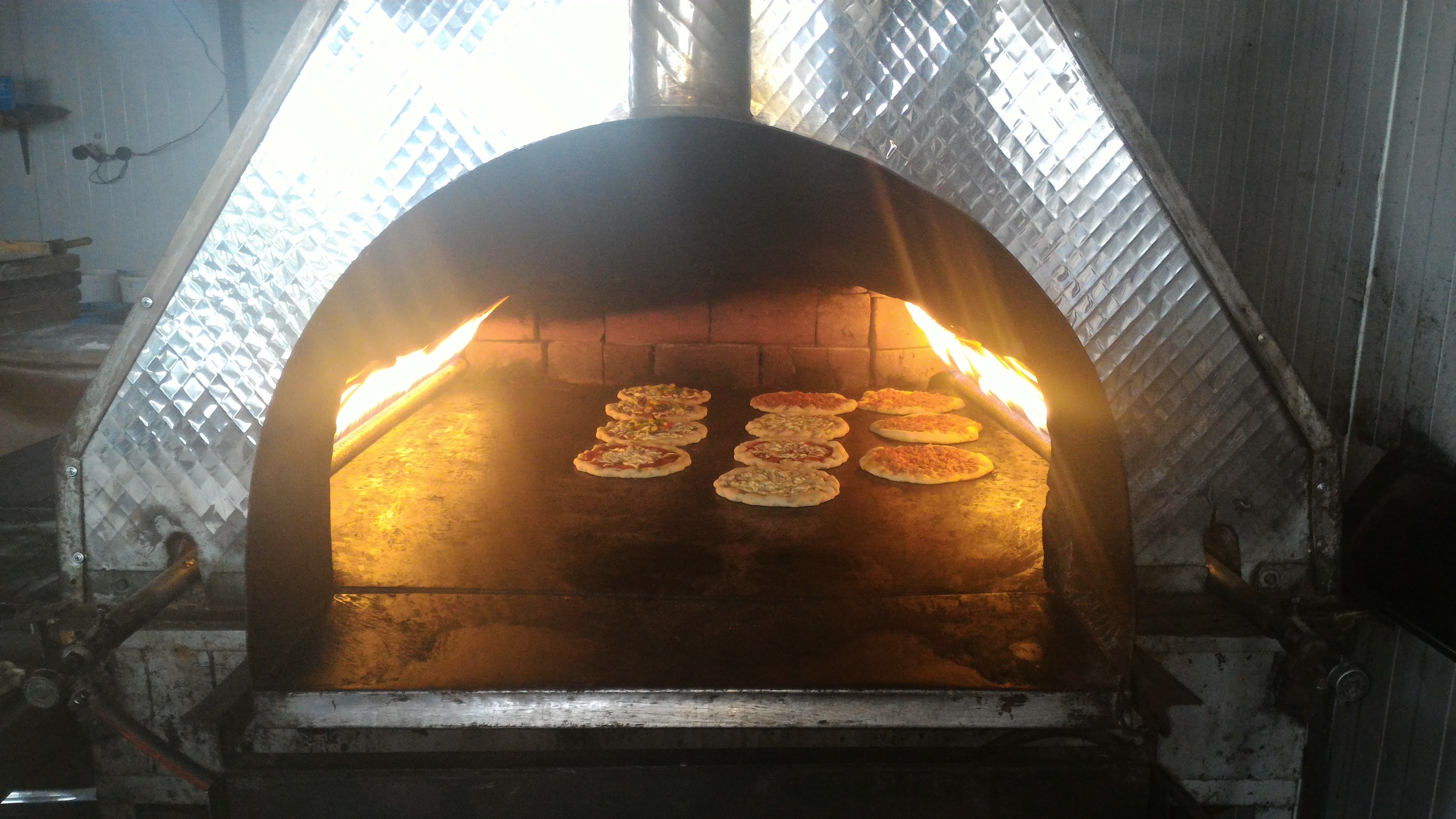 店舗内にある立派な窯で焼くピザは少し冷めてもおいしく、この近所でも人気がある。