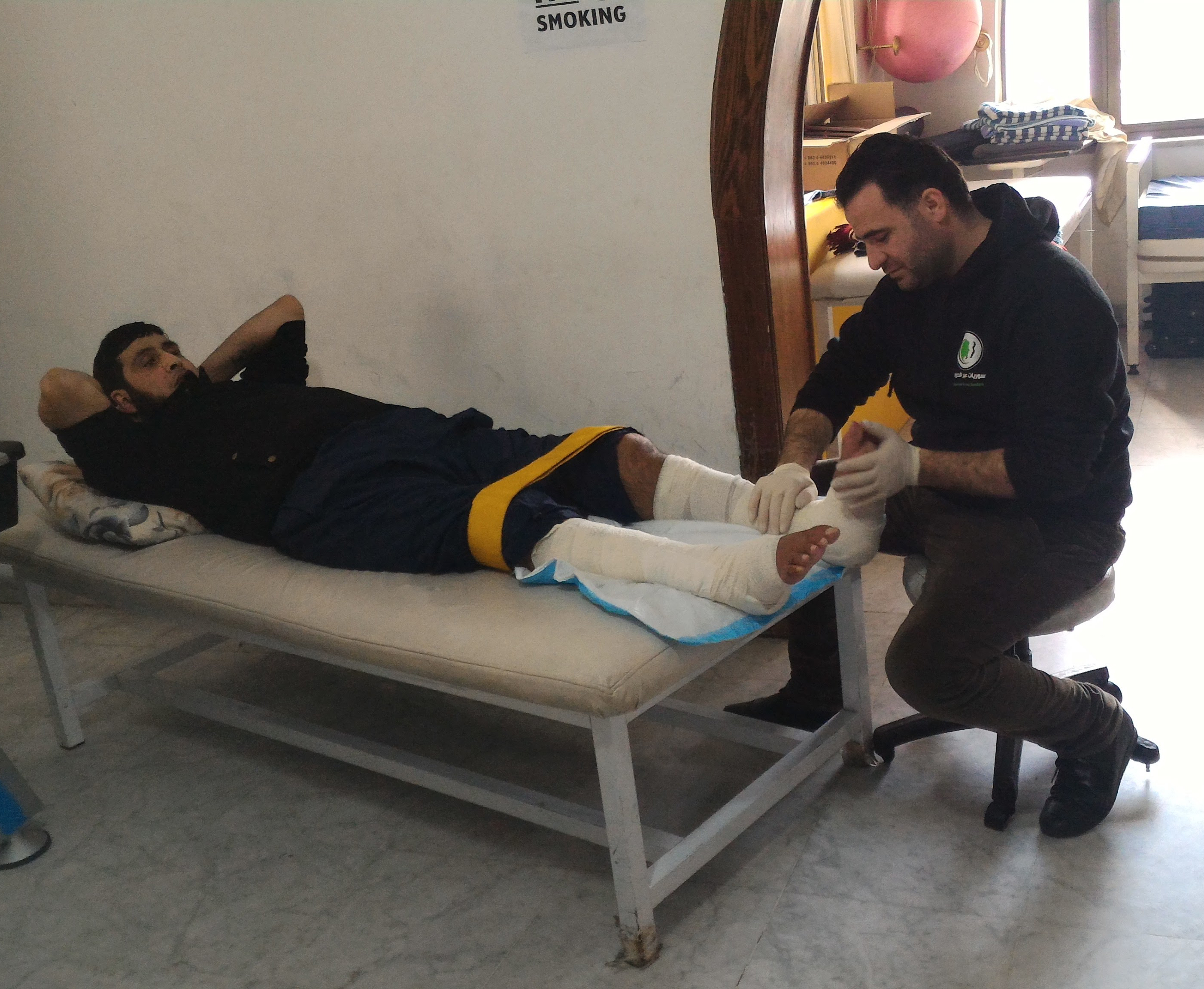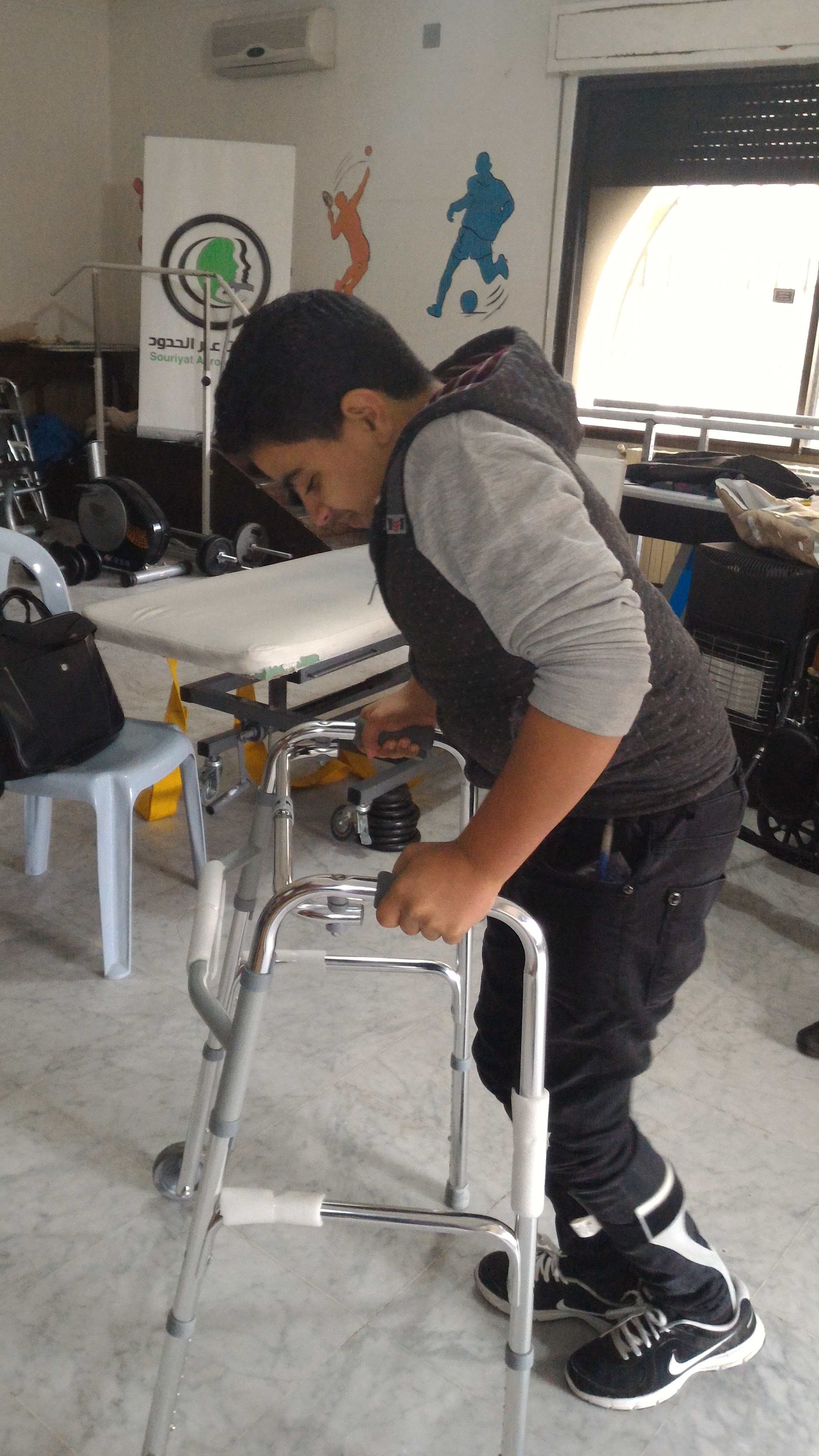 「シリア政府軍による銃撃で、3発の銃弾が胃から背中へ貫通しました。その影響で脊髄を損傷、歩行が困難となり、こうして通院サービスを受けています。