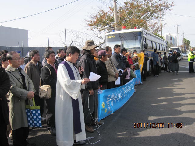 12月5日―8日、韓国教会協議会(NCCK)の主催により、済州島への国際諸宗教連帯訪問団の派遣が行なわれ、海外からは、米国、カナダ、台湾、日本、 アジア・キリスト教協議会(CCA)から12名、韓国内から曹渓宗、カトリック、新教、円仏教などから8名、合計20名が参加し、庭野平和財団からは、野 口専務理事が招待され、参加した。 今回の訪問計画は、2011年10月に沖縄・那覇市で開催された第三回「9条アジア」宗教者会議(詳細はこちら)で検討されたもので、この会議の焦点の一つは、アジア地域における軍事化について、沖縄、済州島、さらにフィリピンにおいて拡大する米国軍事基地の問題であった。
